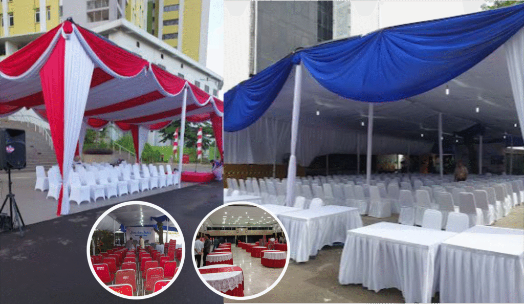 Melayani persewaan Tenda untuk berbagai acara seperti pernikahan, event, kampanye dll. Berikut juga persewaan Kursi, panggung dan peralatan pendukung acara lainnya.