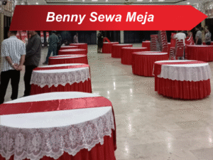Kami melayani penyewaan Meja dengan berbagai bentuk dan ukuran. Misalnya meja bundar untuk pesta